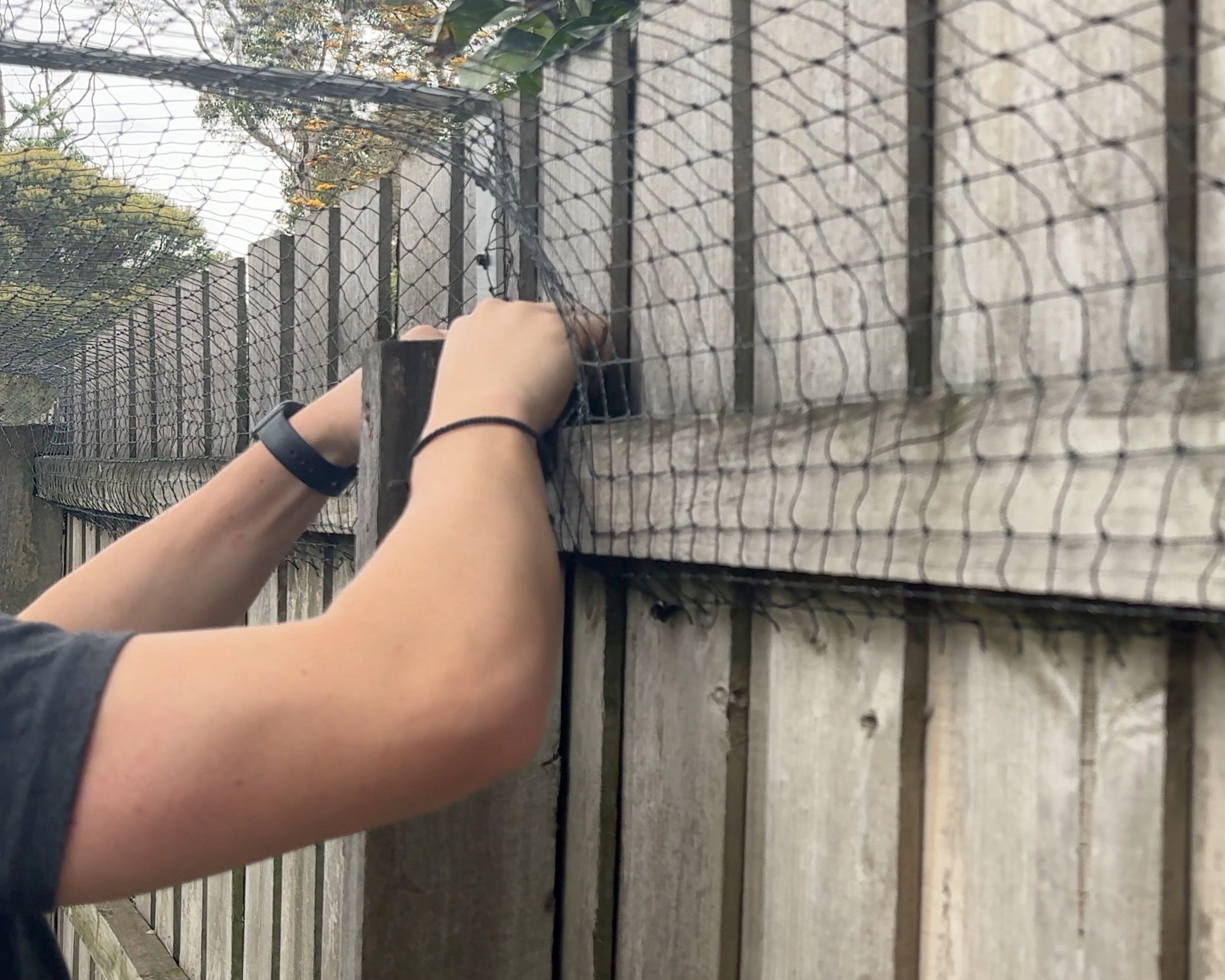 It took a while, but eventually we found some netting that was lightweight, weather proof, tear proof and strong enough to withstand claws and teeth.